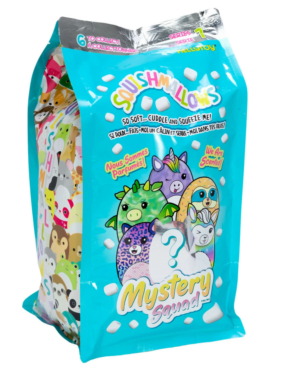 Introducing Squishmallows Mystery Bags! Six exclusive new styles, individually bagged and wrapped in tissue, that are scented and perfect for collectors. Squishmallows are made from super soft marshmallow-like, lovable plush. Their cosy polyester fibres make them machine washable and suitable for all ages. Squishmallows come in a range of size and are ready to be your best friend! They offer comfort, support and fun! They can be used as a couch companion, pillow pal, bedtime buddy, travel mate, or as a friend in times of need. Squishmallows have their own unique bio to make them even more special.